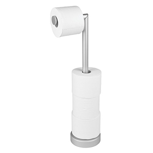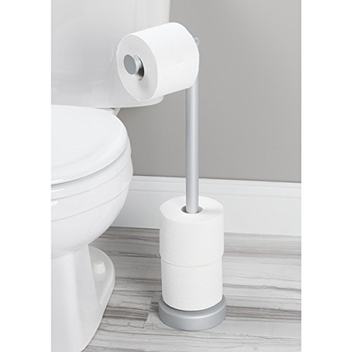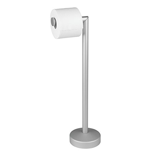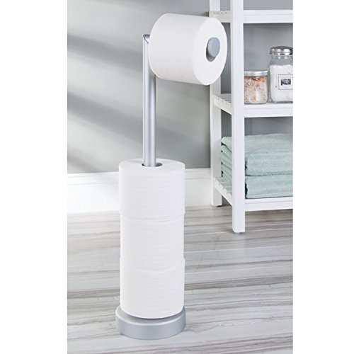 mDesign Rustproof Aluminum Free-Standing Toilet Paper Roll Holder for Bathroom - Silver