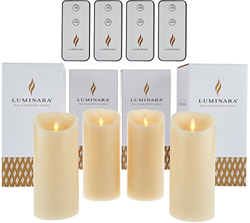 Set of 4 Luminara 6" Flameless Unscented Candles with 4 Remotes (Ivory)