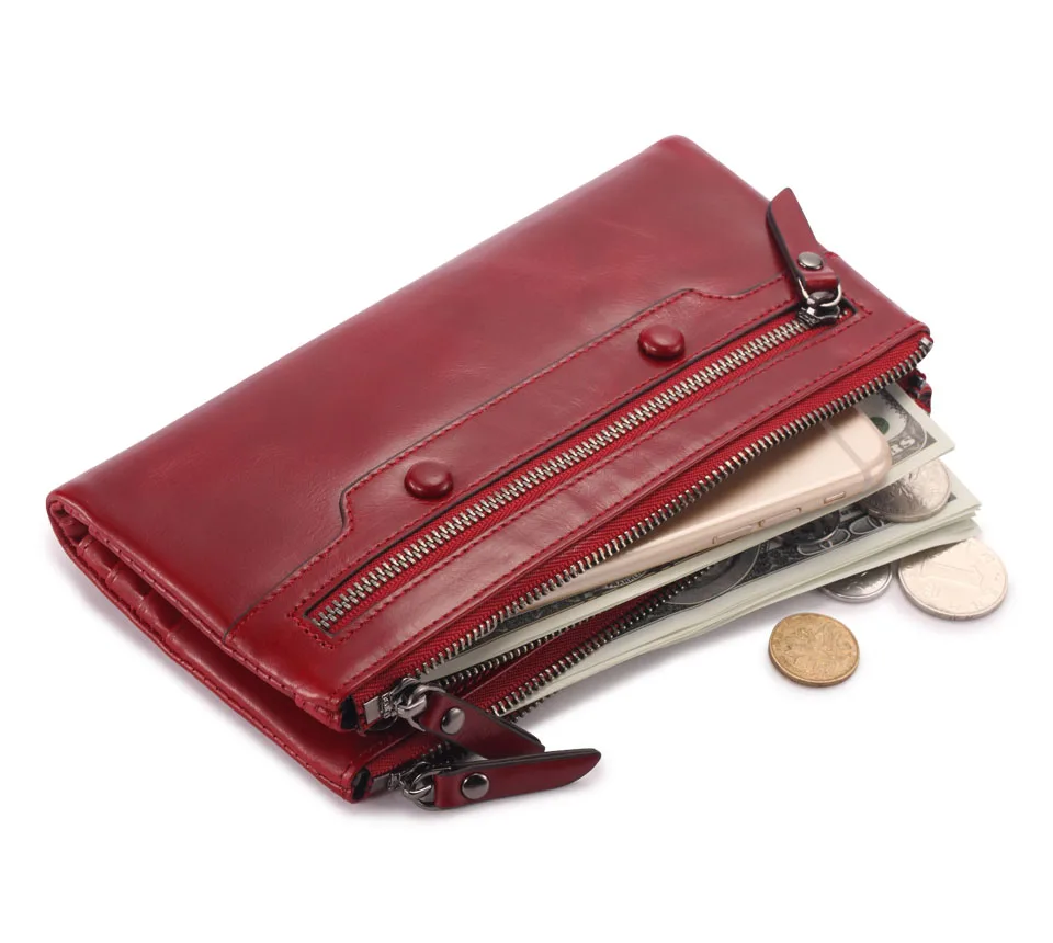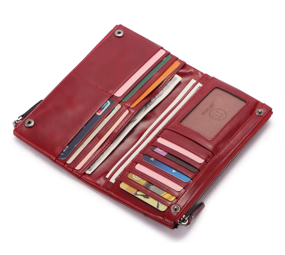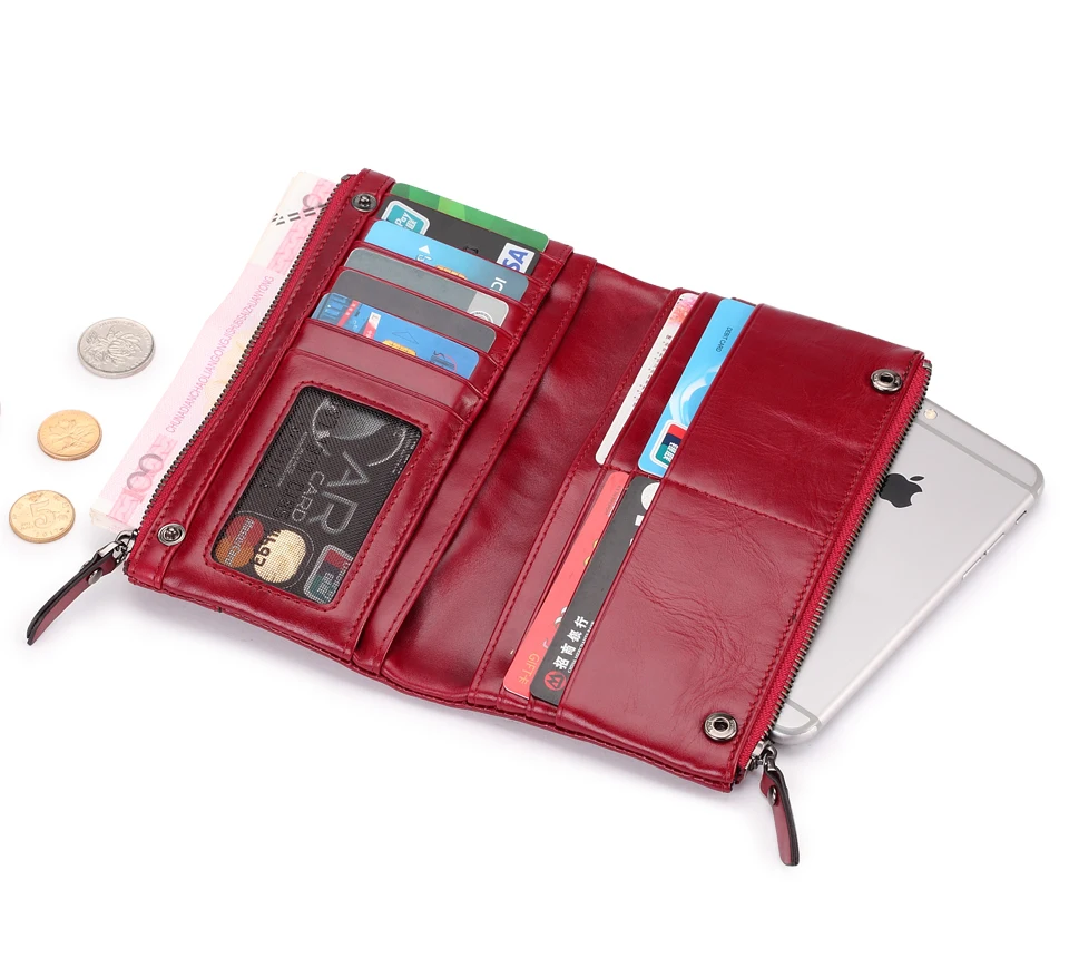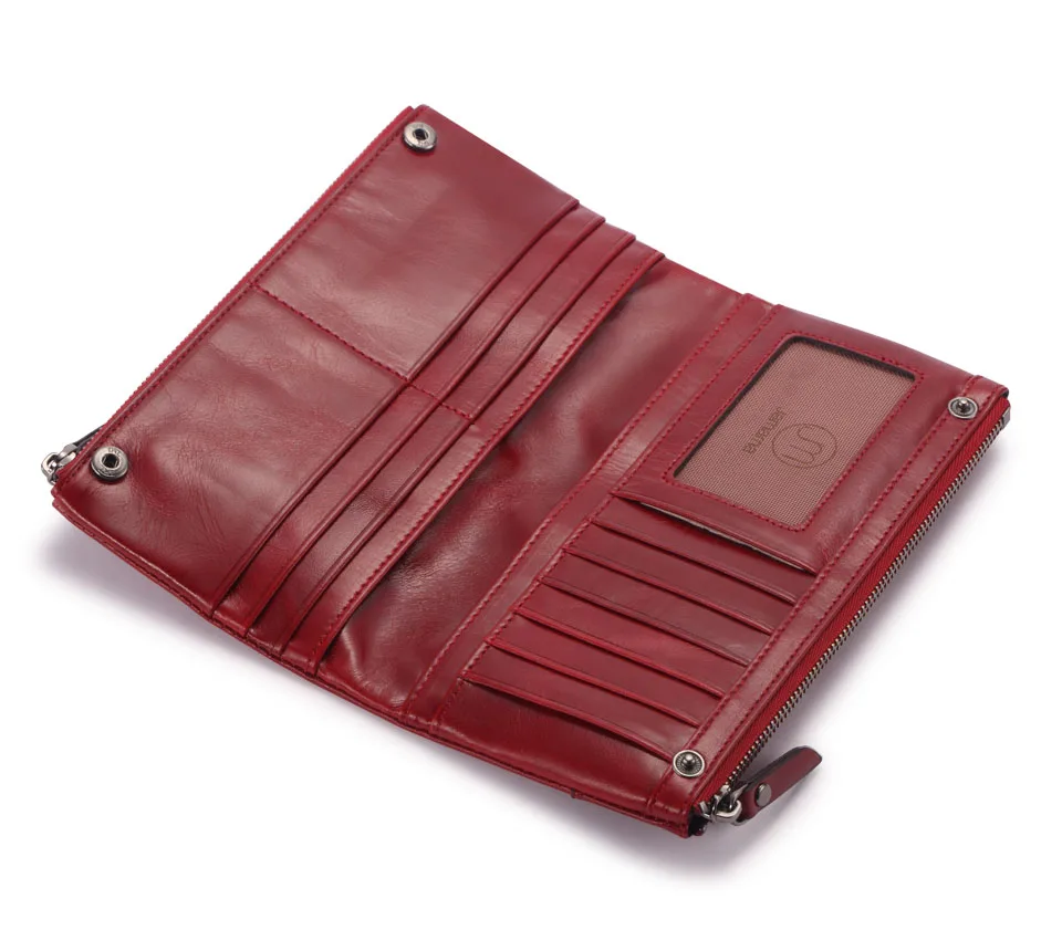 Capacity: 2 Card Holders, 3 Note Compartments, Cell Phone Pocket, 2 Coin Pockets, and Photo Holder