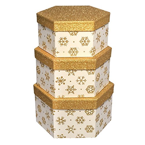 (TastefulTreats.com)/Stationery Party Supplies/Gift Wrapping Supplies/DIRECT FROM USA/Set of 3 Nested Decorative Gift Boxes White with Gold Glitter