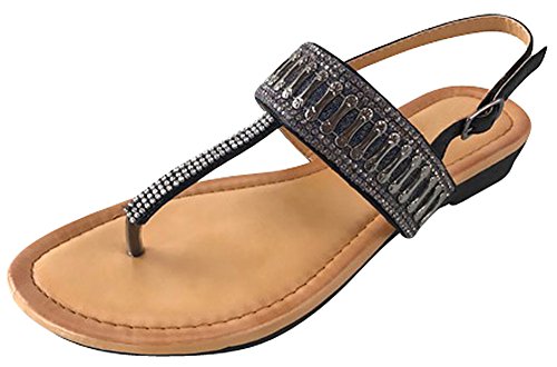 Cambridge Select Women's T-Strap Crystal Rhinestone Beaded Low Wedge Thong Sandal