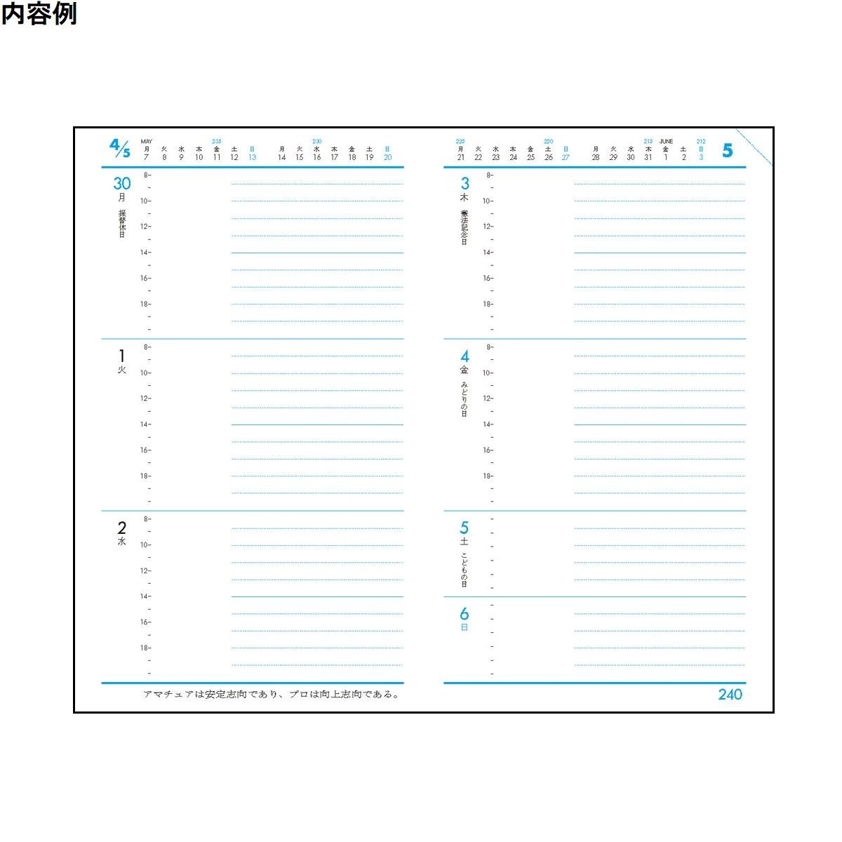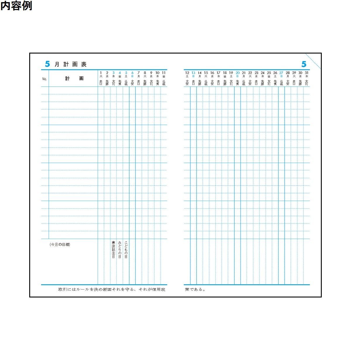· For example, on the weekly plan page, a 4-week calendar that lists the remaining number of days until the end of the year every 5 days and the number of remaining days of the year etc. are displayed so that they can constantly act while considering things' limit