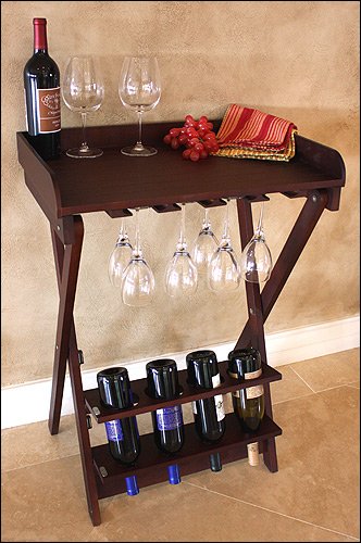 - Holds 4 bottles of wine and up to 12 wine glasses