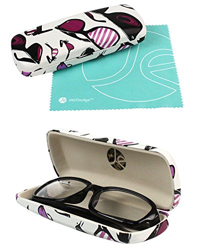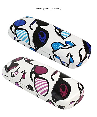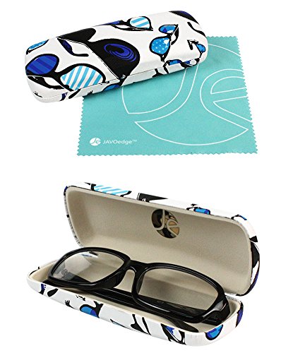[2 PACK], JAVOedge Cool Shades Multi-Color Theme Hard Clamshell Eyeglass Storage Case w/Bonus Microfiber Cloth