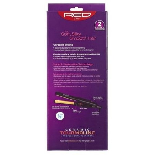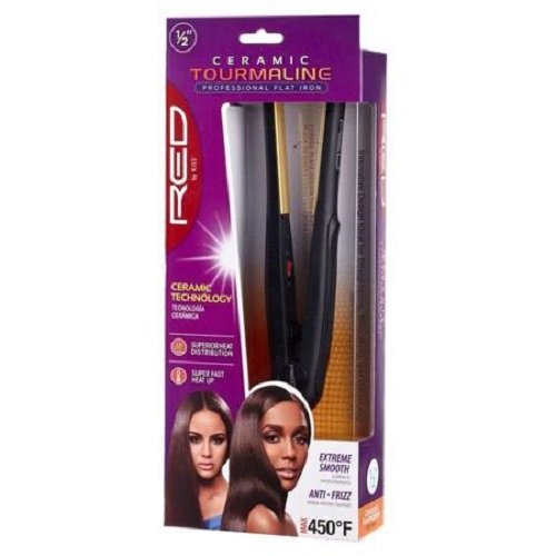 Red by Kiss Professional Ceramic Tourmaline Red Flat Iron 1/2", 1 Pound - Reaches up to 450 °F