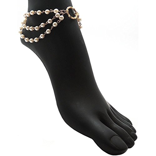 -. Title : Nickel Free 3 Row Imitation Pearl Chain Anklet, Ours Alone, USA!, in Imitation Pearl with Gold Tone Finish