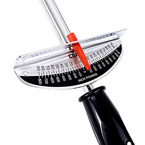 - Feature : Accurately tighten and loosen nuts and bolts on your car, truck or garden tractor with this wrench / An easy to read scale is calibrated in both directions in inch-pounds from 0 to 800 / This 3/8" drive beam torque wrench features a graduated indicator tip to eliminate parallax error / A rugged, steel construction with corrosion-resistant, mirror-chrome finish makes this a vital tool / Greater gripping capability is provided by a textured black handle