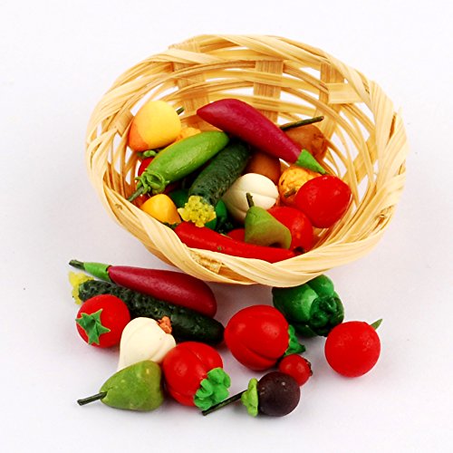 -. Binding : Toy -. Brand : NW -. EAN : 0734010512528 -. Feature : Including :17 types, each type of about 2-3pcs 1/12 mini fruit and vegitable,Total is 50pcs / Size:1/12 mini fruit / Note: Not children's toys, please note that children avoid eating or accidental injury; / The basket is not inculd.