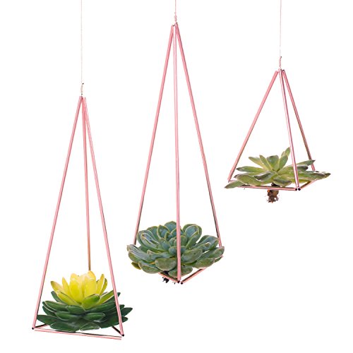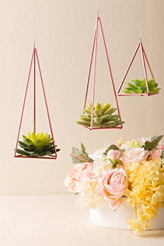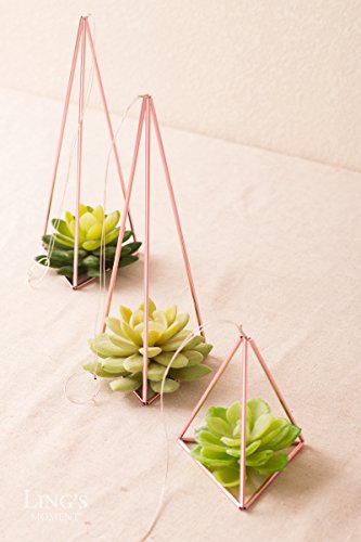 Ling's moment Set of 3 Air Plant Holder Candle Holder Rose Gold Geometric Himmeli Ornament Aluminum Home Wall Decor Christmas Weeding Party