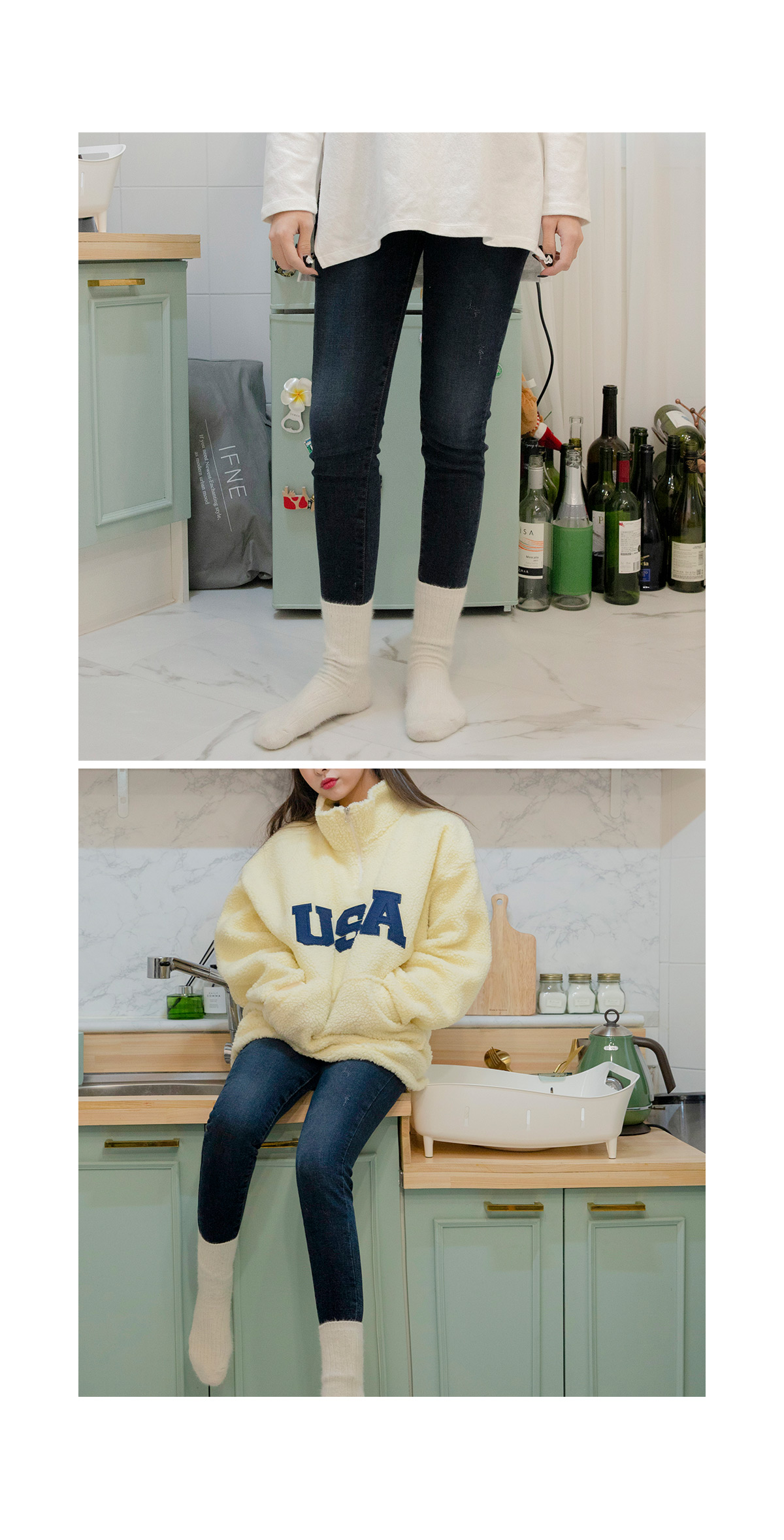 "웜 스키니 팬츠" 추운 겨울에 걸맞는 딥한 무드의 생지 데님 팬츠 아이템 준비해봤어요. 요 아이템은 유행에 구애받지 않아 하나쯤 소장해 두시면 두고두고 활용할 수 있어 추천드려요 슬림핏으로 제작되어 다리라인을 더욱 가늘어 보이도록 도와주고 안감이 기모로 되어있어 보온성까지 갖췄어요! 약간의 스판감이 착용시 큰 부담없을꺼에요 깔끔한 스티치 디테일이 더해져 밋밋한 느낌을 덜어주고 있구요 생지 원단이라 흐물거림 없이 탄탄한 핏을 연출해 퀄리티 좋다고 느끼실꺼랍니다 박시한 니트나 모델처럼 집업 스타일링해서 입으면 데일리하면서 한층 더 멋스러운 코디를 완성하실 수 있을거에요^^ color 블루 fabric 면97% 스판3% size S,M,L S - 허리 33 힙40.5 허벅지22 밑위31.5 밑단11 총장93 M - 허리 35 힙42.5 허벅지23 밑위32.5 밑단12 총장94 L - 허리 37 힙44.5 허벅지24 밑위33.5 밑단13 총장95 (재는 위치 및 재봉과정에 따라 오차가 있을 수 있습니다) ![]() ![]() ![]() ![]() ![]() ![]() ![]() ![]() ![]() ![]() ![]() ![]() |