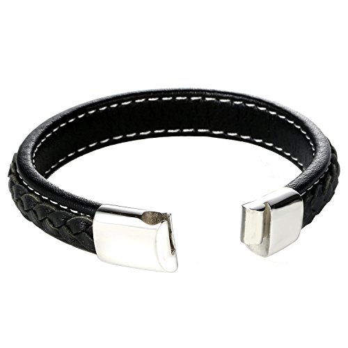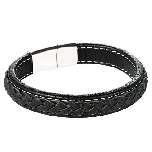 -. Title : DonDon Herren Armband Leder geflochten schwarz veredelt mit Steppnähten weiß und Magnetverschluss