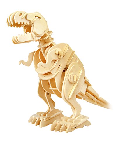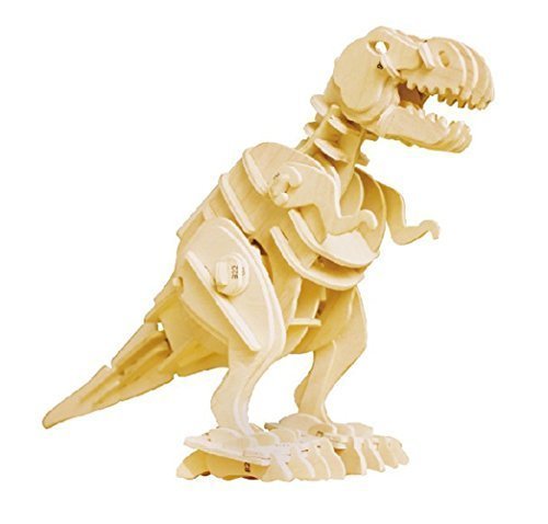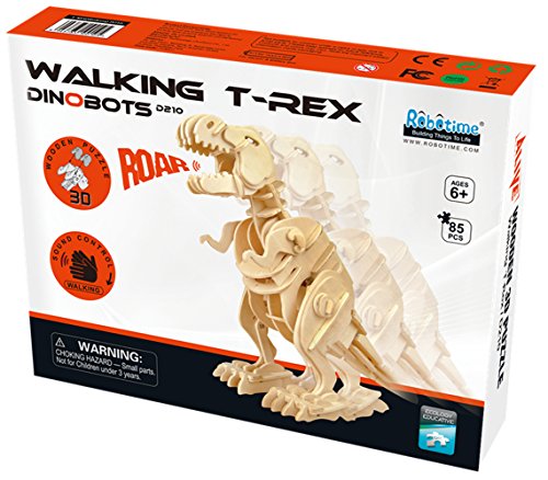 Robotime can transport you back to the dinosaur era. As you build it to life and learn how these gigantic creatures may have existed. Robotime is a real wood three dimensional puzzle that when finished is a fully functional robotic dinosaur. It is an intelligent high-tech toy with high simulation and interaction. Your dinosaur will walk, roar. No tools or glues needed to construct these creatures. Build endless fun and learning with your very own Robotime Dinosaur and watch they come alive! You have full control of your dinosaur when pressing any of the 4 buttons on the remote control. You can make him walk to the left and right and he will roar & bite. Your Robotime dinosaur will function with the remote control under your full command in the R/C mode or in one of three modes. In the free mode the dino will act more vigorous; it will walk more freely when hearing sound. In the demo mode, set him on your shelf in your bedroom. When intruders enter your room, watch him react to sound by roaring. As you are the master of your dinosaur! With easy to follow step-by-step instructions and illustrations you and your child will have hours of fun with the RC Wooden T-Rex Puzzle. Along with the detailed instructions, each pre-cut wooden piece is numbered to provide additional ease of assembly. With each dinosaur there are approximately 100 pieces to construct these powerful creatures. Playing with and constructing Tyrannosaurs (T-Rex), you and your child can learn by playing. Robotime is technology made fun while exciting the senses and spirit of your child. As they imagine and learn about how these powerful creatures would have roamed the earth millions of years ago. Robotime building things to lifeFeature