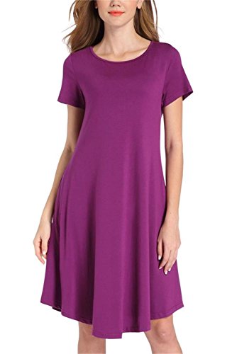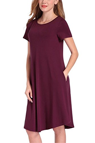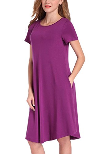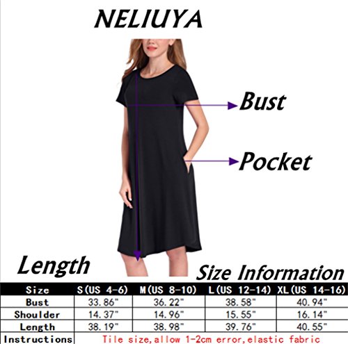 NELIUYA Women's Casual Plain Simple Pocket T-shirt Loose Dress: