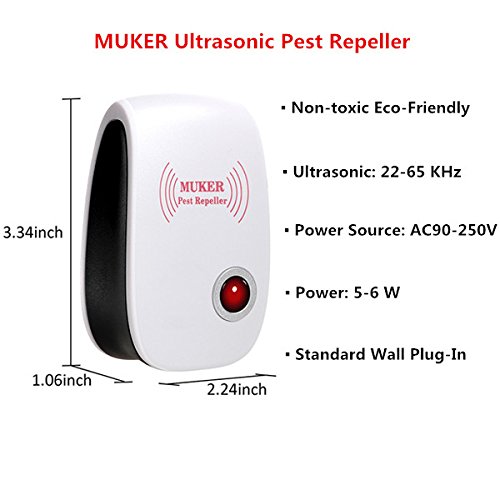 HARMLESS AND ECO-FRIENDLY - It is safe and environment-friendly. MUKER ultrasonic pest repeller won’t leave nasty dead insects or rats behind for you to deal with. Noiseless, no chemicals, no poisons , the ultrasonic pest repeller is 100% safe for your family members and pets