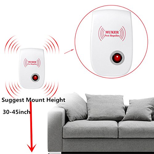 WIDE COVERAGE AREA - MUKER ultrasonic pest repeller is effective in an area up to 800-1200 SQ.FT. However, as ultrasonic waves can’t pass through walls and solid objects, we recommend you to place units in every room, and the serious problem area uses at least two sets of equipment