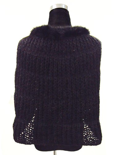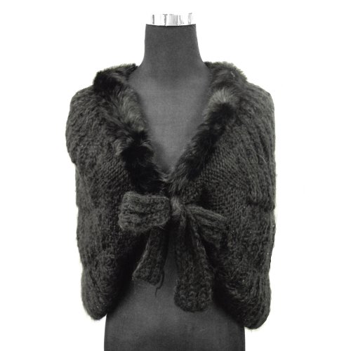 (Fur Scarf Shawl)/Accessories/Scarves/DIRECT FROM USA/Angora/Rabbit Fur Collar Loose Knit Wool Shawl Shrug Cape- Black