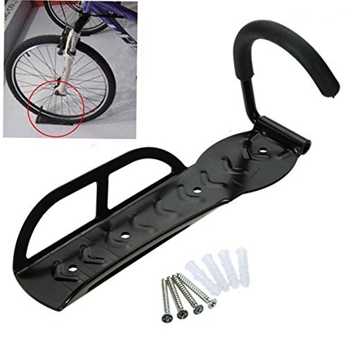 Studio : Jesica Publisher : Jesica Binding : Misc. Product Description Description: Bicycle Wall Mount Hanger for hanging the bike vertically to save space Plastic cover on the hook, protect the wheel from scratching Fits on any solid wall (Screws/wall plugs provided,random color) Four mounting points and side special design make fasten sturdy Suitable for all type bikes like Mountain bikes, road bikes, folding bikes etc... Specifications: Material:Steel Load Capacity:about 30kg Color:Black Size:Approx.26x7.8cm Weight:Approx.0.6kg