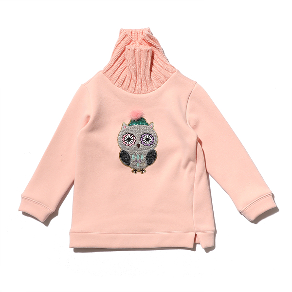 안쪽에는 전체적으로 기모처리가 되어 따뜻하며 부엉이패치가 있어 화사한 느낌으로 코디되는 티셔츠입니다.