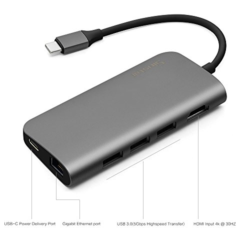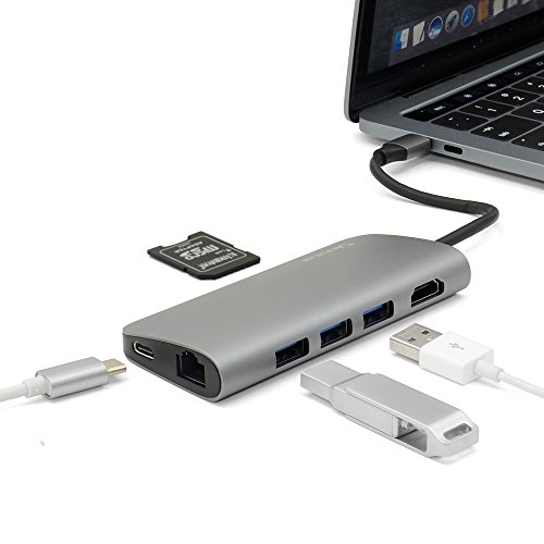 8-in-1 Multi Ports Design, Expand Your Type-C Port-- Features three USB 3.0 ports, SD and Micro SD card slots, Ethernet, charging port, and 4K HDMI video output. Note: Use HDMI 2.0 Cables for Optimum Performance