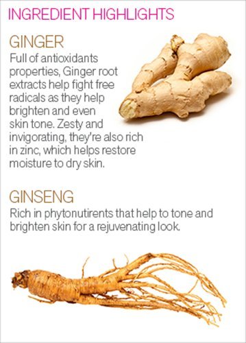 - GINGER: it is full of anti-oxidant properties. It extract helps to fight against free radicals and ultimately brighten and even out the skin tone. It is also zesty and invigorating due to the presence of zinc in it which helps restore moisture to the skin.