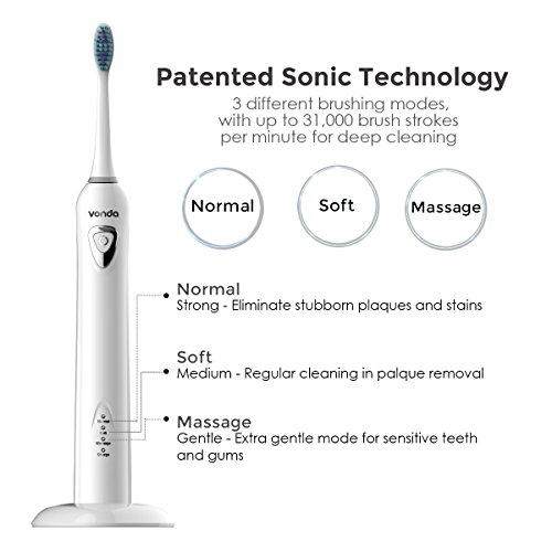 VONDA Sonic Electric Toothbrush USB Rechargeable with 3 Brushing...