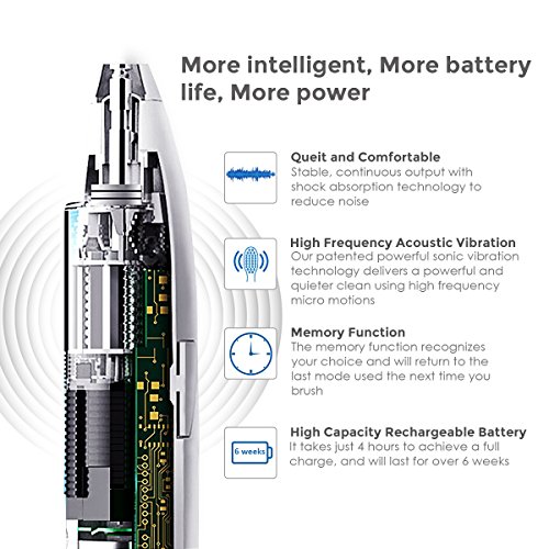Patented Sonic Technology - with up to 31,000 vibrations rate per minute, remove up to 300% plaques and stains than a regular manual toothbrush, improve greatly your oral health