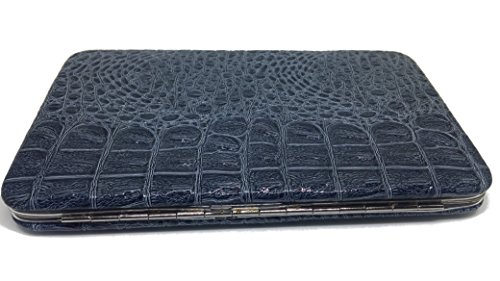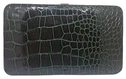 Product Description This women's clutch wallet measures 7.5 x 4.5 inches. It features an exotic looking faux crocodile leather with a croc horn pattern. It also has a zippered coin pocket, id window, bill holder, pen loop, and matching checkbook cover. 0