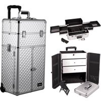 -. Feature : Silver Dmnd Trolley Makeup Case - I3166