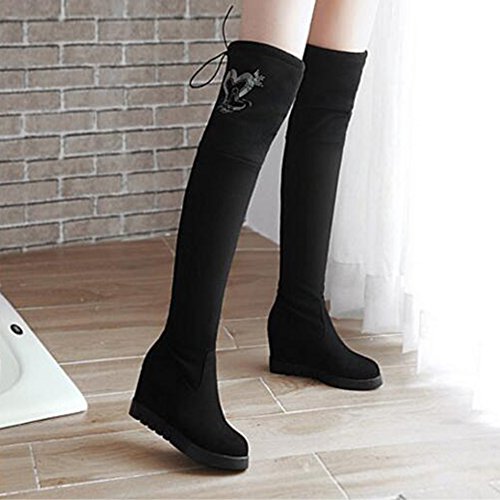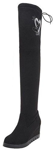 (Mofri)/Women's/Boots/DIRECT FROM USA/Mofri Women's Comfy Faux Suede Round Toe High Wedge Heel Drawstring Pull on Over the Knee Boots...