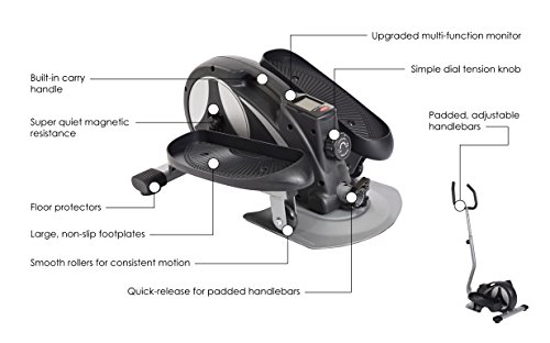 Studio : Stamina Products Inc Publisher : Stamina Products Inc Binding : Misc. Product Description The Stamina InMotion Compact Strider Pro Elliptical Trainer is built to give you the most efficient workouts, even in a small space. This compact elliptical trainer has 8 resistance functions to match your fitness level and you can track your calories, distance, and time on the multi-function monitor. Security and stability is provided through the non-slip, large footplates and floor protectors on the bottom of the machine. Get a consistent workout that is easy on your joints thanks to the smooth motion of the rollers. The handlebars are padded for comfort and removable to make storing the entire system a snap. The built in handle makes this elliptical easy to transport. Founded in 1987, Stamina is dedicated to building a stronger, healthier you. The company supplies high-quality products at excellent value to the fitness and leisure markets, showcasing hundreds of products around the world over the past two decades. Stamina is responsible for such brands as Body by Jake, Suzanne Somers, Tony Little, and more. Their mission is straightforward and admirable: Stamina strives to outperform the competition by maintaining effective communication, consistent quality, and superior service. They will continue to pursue perfection through the design excellence of these home fitness products. 8 levels of resistance. Low-impact elliptical motion. Use while sitting or standing. Simple dial tension. Reverse-motion pedals. Easy-to-read monitor tracks time, distance, calories burned, and all time distance. Large, non-slip footplates. Dimensions: 21.5L x 17W x 48.5H in.. Assembly required. 0