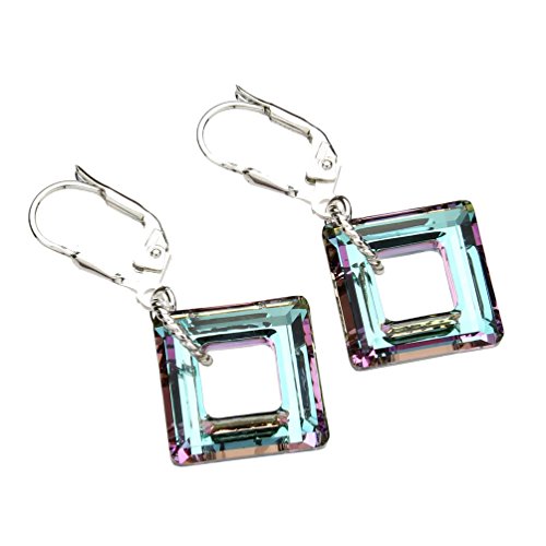 -. Title : Swarovski Elements Crystal Square Silver Leverback Earrings