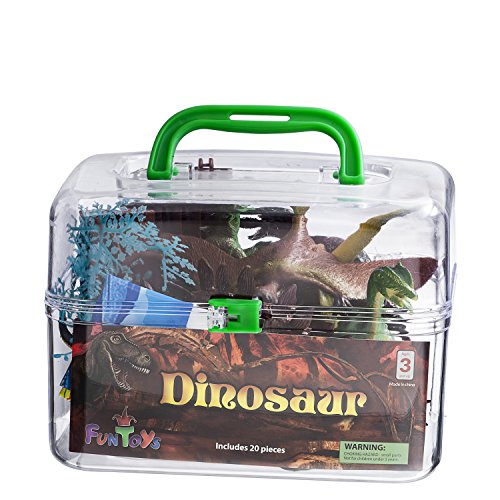 -. Feature : Massive set of 20 pics, includes 8 Big Dinosaurs, / 4 Gate panels, 2 bigger and 2 smaller plastic stones, / 2 Trees, and 2 tree stumps, and a small plastic mat, / Comes in very good and convenient see through box / Full set of everything a child needs to play for hours...