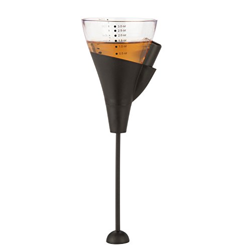 -. Feature : Measure then press to release into your glass, shaker or mixer / Measures up to 3 ounces at a time / Bonus layered drink attachment with deflector, Patent Pending / Easily create perfect layered drinks every time / Convenient stand holds jigger in place