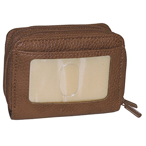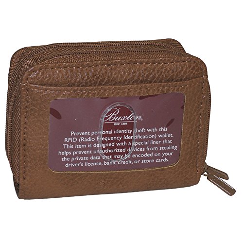 Buxton Womens RFID Accordion Double Zippered Wizard Credit Card ID Holder Travel Wallet (Mahogany)