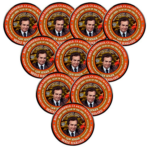 Product Description 10 Merle Haggard Country Singer Pins, Astrology Aries Zodiac Fire Bull. Mylar Covered Metal button with pin-back, laser printed and polished by hand before being placed in cellophane bag for protection 0