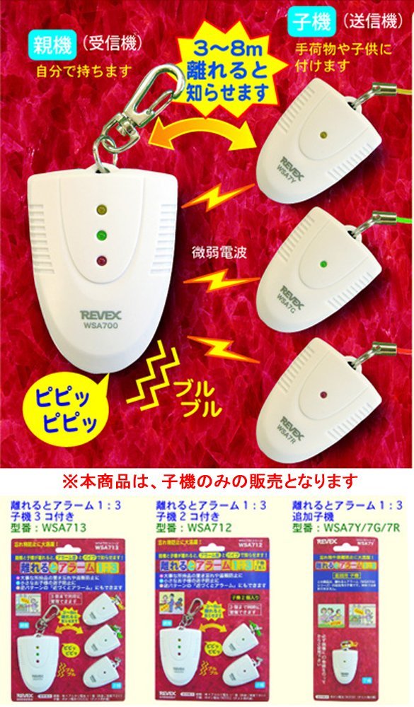 ● Monitoring distance is 3 m to 8 m (Monitoring distance varies depending on the environment to be used.) ● Three patterns of sounds, sounds, vibes and vibrations can be used for the receiving sound of the parent machine. ● The ID code consists of 256 digital signals