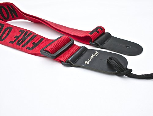 -. Title : Guitar Strap Fire Line Do Not Cross For Acoustics Electrics & Bass Red Nylon Thick Leather Ends Made In U.S.A.