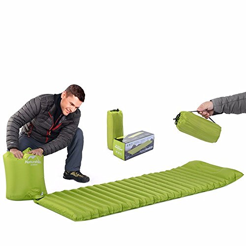 Brand: Naturehike Model: NH16D003-D Color: Orange.Green Unfolding size: 1860*600*85mm Folding size: 250*105mm Packing about weight: 650g Material: Nylon Suitable for:camping,climbing,floating Place of origin: China Usage:Open the mat,insert the air bag's inflatable mouth to the mat's inflatable mouth,roll the air bag 3-4 times,then the mat will be filled with air. 0