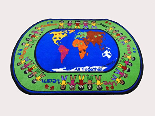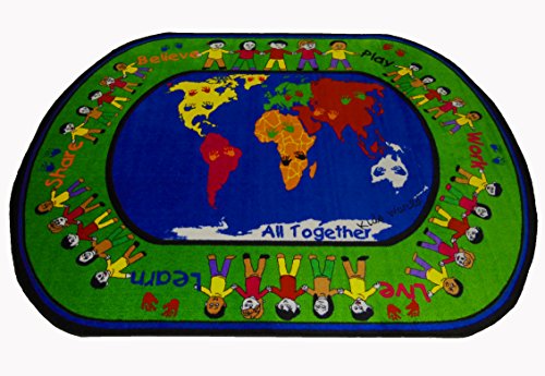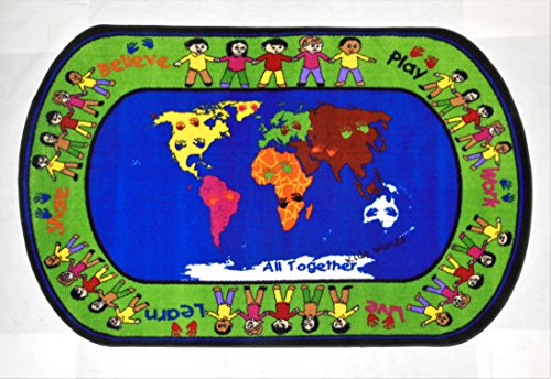 Studio : Kids World Carpets Publisher : Kids World Carpets Product Description Encourage your child to learn with this colorful 'All Together' area rug. This durable nylon rug is anti-microbial, non-toxic, and flame retardant so your little ones stay safe.Features:Machine made weave100-percent nylon is 2-ply and heat setPile height of 0.25 inchesVertical laser jet printed multicolor designHeavy Duty double stitched bindingSoft super canvas backingStain resistant, anti-static, anti-microbialFlame retardant, fire rated for commercial useLead-free, non-toxic; contains latexClass 1 testing ASTM-E-648 and Smoke Density 662 CertifiedFor indoor use only1 Year binding warranty, limited wear warranty5 feet wide x 8 feet long1/8th gauge, SPI 64, density 3168Face weight of 22 ounces, total weight of 4 pounds per square yardTip: We recommend the use of a non-skid pad to keep the rug in place on smooth surfaces.All rug sizes are approximate. Due to the difference of monitor colors, some rug colors may vary slightly. We try to represent all rug colors accurately. Please refer to the text above for a description of the colors shown in the photo. 0