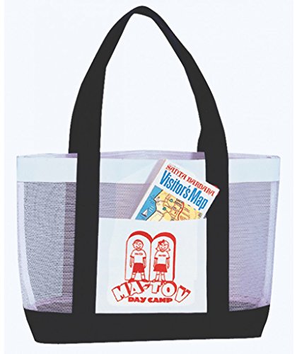 -. Feature : Mesh Tote Bag / Size - 19 W x 12 H x 4-1/2 D in. / Color - Black / Material - 600D polyester with nylon mesh / Case of 48