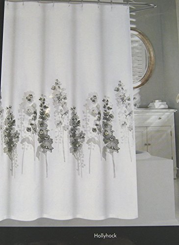 Tahari Home Fabric Floral Shower Curtain Hollyhock Gray 72" X 72"