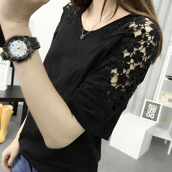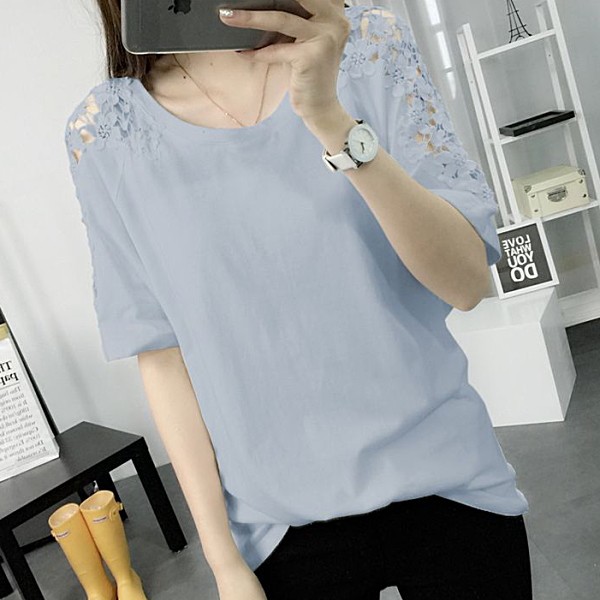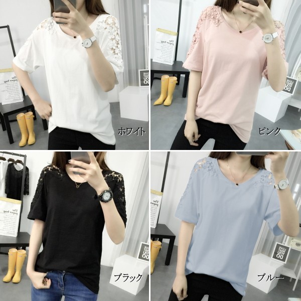 | 商品説明 | シースルー袖 フラワーレース ラウンドネック Tシャツカットソー♪ デイリーにおススメのナチュラルガーリーなTシャツです。 シンプルでボトムスとの相性もバツグンなのでカラーバリエで揃えても♪ |