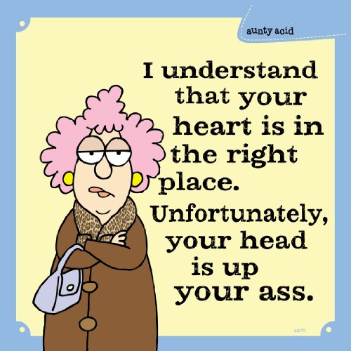 - "I understand that your heart is in the right place; Unfortunately, your head is up your ass"