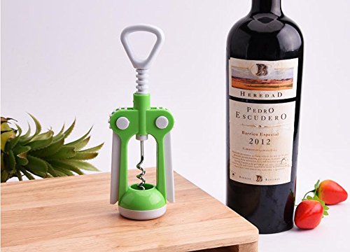 FEATURES Wine Bottle Opener constructed of zinc alloy body and stainless steel corkscrew., ALL-in-one Elegant design, Exquisite appearance With metal gears and double levers, the corkscrew removes cork quickly and efficiently Applicable to:Red wine wine beer Product Type: Bottle opener Color:Green,Red HOW TO USE 1. Sit the wine bottle opener over the bottle. 2. Twist the turning knob to insert the auger into the cork. (Centered screw point ensures screw drives through the center of the cork, you may also watch through the designed hole in opener and make sure the screw keeps perpendicular to the cork) 3. Watch opener's wings rising 4. When wings rise to proper height, press both wings down to extract the cork. Package Includes: 1 x Bottle Opener 0 |