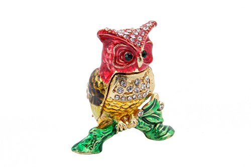 QIFU-Hand Painted Enameled Owl Style Decorative Hinged Jewelry Trinket Box Unique Gift For Home Decor