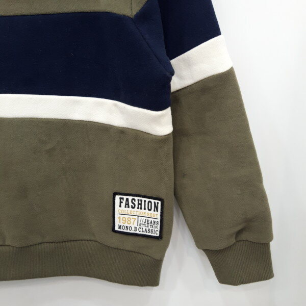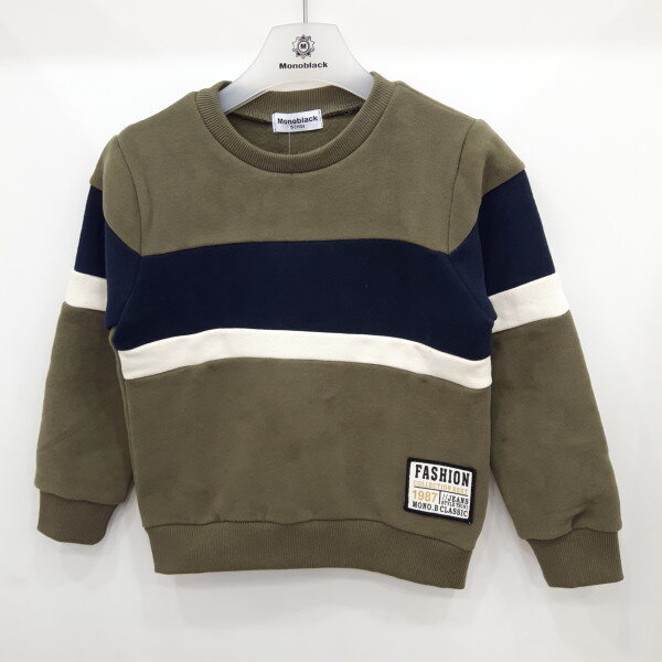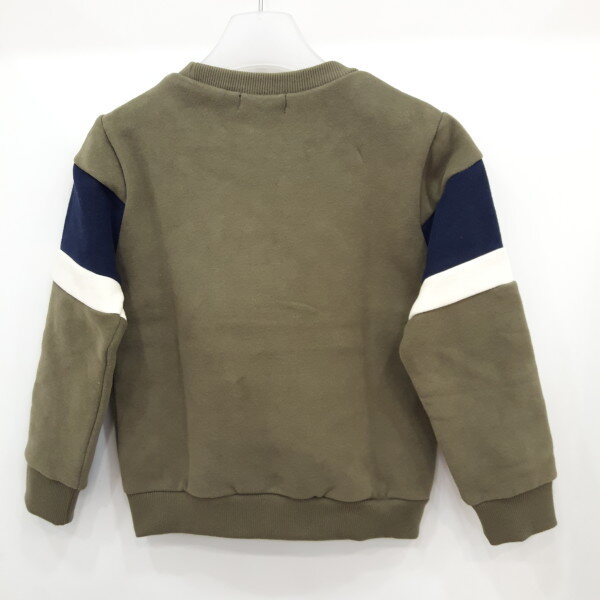 기모 안감 라운드넥 맨투맨 티셔츠로 4단 절개가 되어 있습니다 카키색과 네이비 아이보리가 잘 조화되어 심플합니다