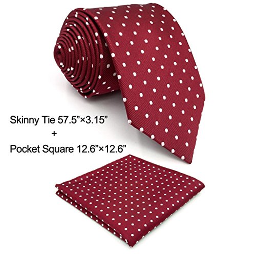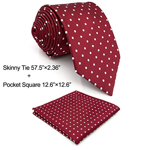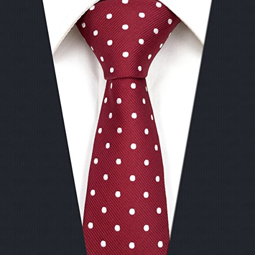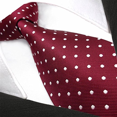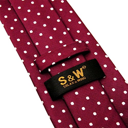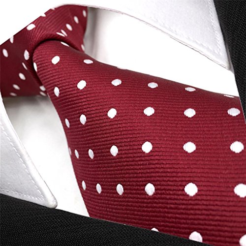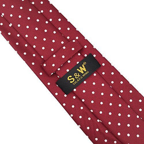 | ShlaxWing Red Dots Maroon Wedding Necktie Men's Tie Fashion 57.5" Extra Long 63" |