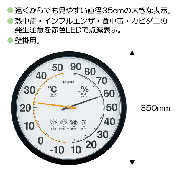 ●「熱中症」「食中毒」「インフルエンザ」「カビ・ダニ」が発生しやすい温湿度の場合に、赤色LEDが点滅してお知らせ。