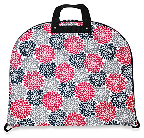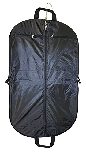 Product Description Take your dress clothes with you confidently on vacation with this stylish garment bag! This piece of lightweight luggage is great for jet setters and can be used for a quick, close by staycation or for a weekend excursion to your favorite retreat. Made out of durable 600 Denier Polyester fabric in a chic print. This garment bag folds in half and can be hung by its metal hook. The interior of this bag features multiple zipper pockets to hold shoes and accessories. Perfect for transporting cheer uniforms or theatre costumes to and from while keeping them clean and wrinkle free! Organize your closet and keep delicate, high quality items neat and pristine. 0