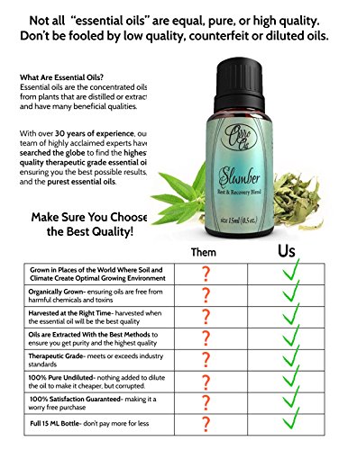DON'T SETTLE FOR LESS: Our experts have over 30 years' experience masterfully and artistically blending the oils by hand to create the perfect mix. The Slumber essential oil blend is created from 8 powerful essential oils that work together to create a powerful natural sleep remedy. With potent oil and a full 15 ml bottle, one bottle of Slumber may be equal to 2-3 of a lesser oil!